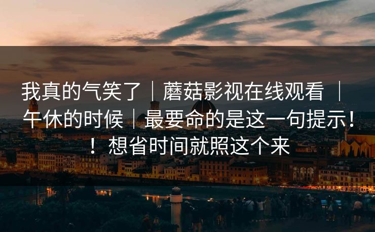 我真的气笑了|蘑菇影视在线观看 | 午休的时候|最要命的是这一句提示!!想省时间就照这个来 午休想偷得浮生半小时,好好追一集解压。结果蘑菇影视在最好看的桥段跳出一句——“您已连续观看30分钟,请休息一下”——气得我差点笑出声:剧情正要反转,...