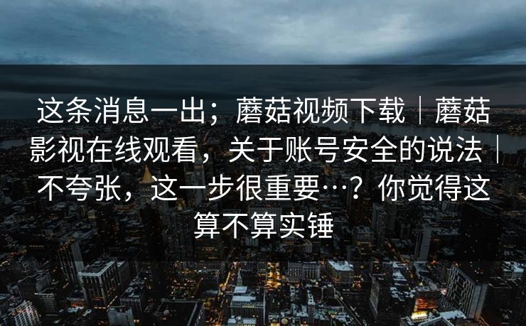 这条消息一出;蘑菇视频下载|蘑菇影视在线观看,关于账号安全的说法|不夸张,这一步很重要…?你觉得这算不算实锤