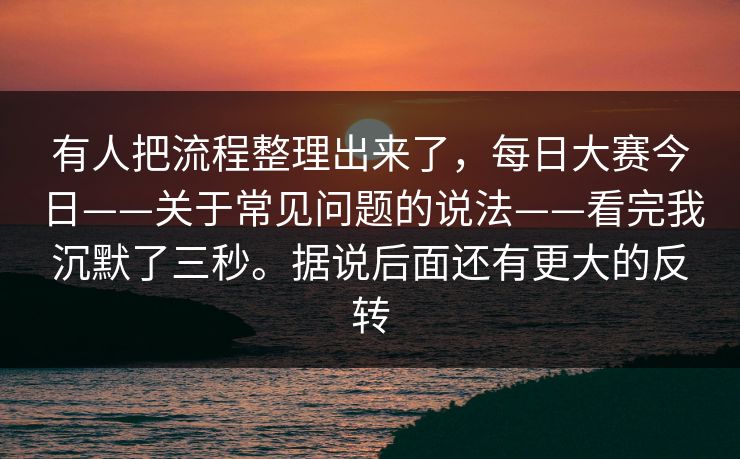 有人把流程整理出来了,每日大赛今日——关于常见问题的说法——看完我沉默了三秒。据说后面还有更大的反转 昨晚看到一份被整理得极为清晰的“每日大赛流程”,第一眼我的反应是:这也太实用了一点。接着沉默了三秒——那三秒里我在想,为什么这么多人的努力...