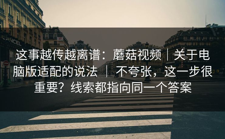 这事越传越离谱:蘑菇视频|关于电脑版适配的说法 | 不夸张,这一步很重要?线索都指向同一个答案