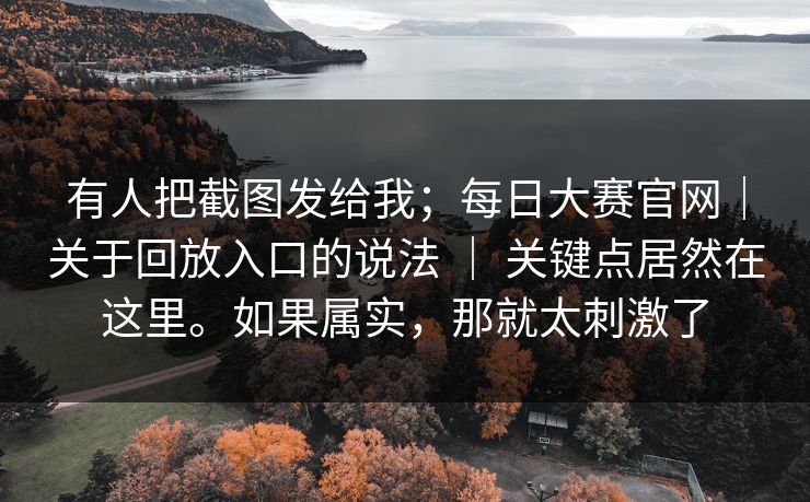 有人把截图发给我;每日大赛官网|关于回放入口的说法 | 关键点居然在这里。如果属实,那就太刺激了 前言:一张截图点燃了圈子 昨晚有人把一张截图发到群里,标题直奔主题:每日大赛官网的“回放入口”貌似藏了新门道。大家一边点赞一边刷屏——这类爆料...