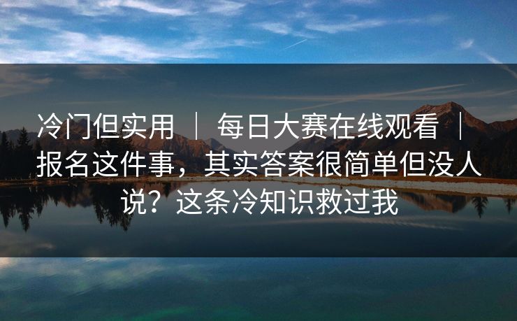 冷门但实用 | 每日大赛在线观看 | 报名这件事,其实答案很简单但没人说?这条冷知识救过我