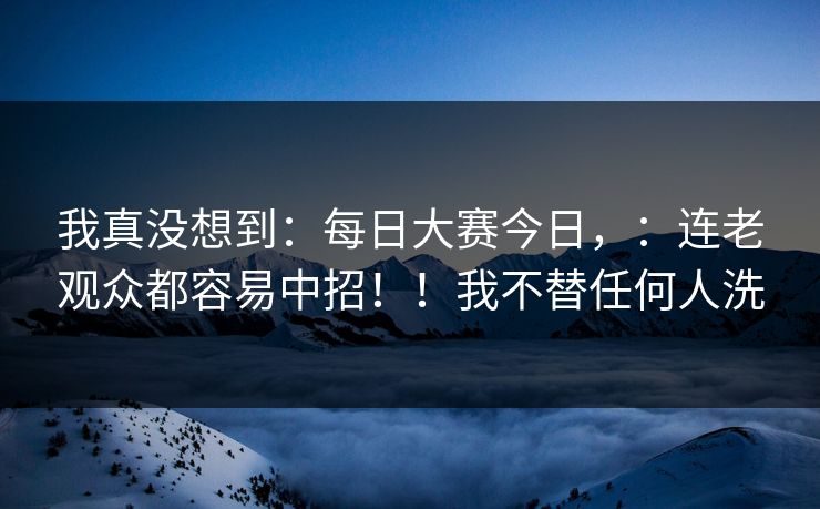 我真没想到:每日大赛今日,:连老观众都容易中招!!我不替任何人洗