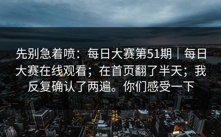 先别急着喷:每日大赛第51期|每日大赛在线观看;在首页翻了半天;我反复确认了两遍。你们感受一下 如果你和我一样,第一眼看到第51期就有话想说,那先别急着开喷。先看一遍、再感受一下细节;先别被第一印象带跑偏。下面把我亲自核实过的情况、观看方法...