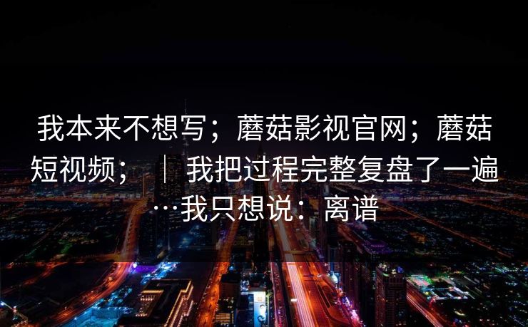 我本来不想写;蘑菇影视官网;蘑菇短视频; | 我把过程完整复盘了一遍…我只想说:离谱